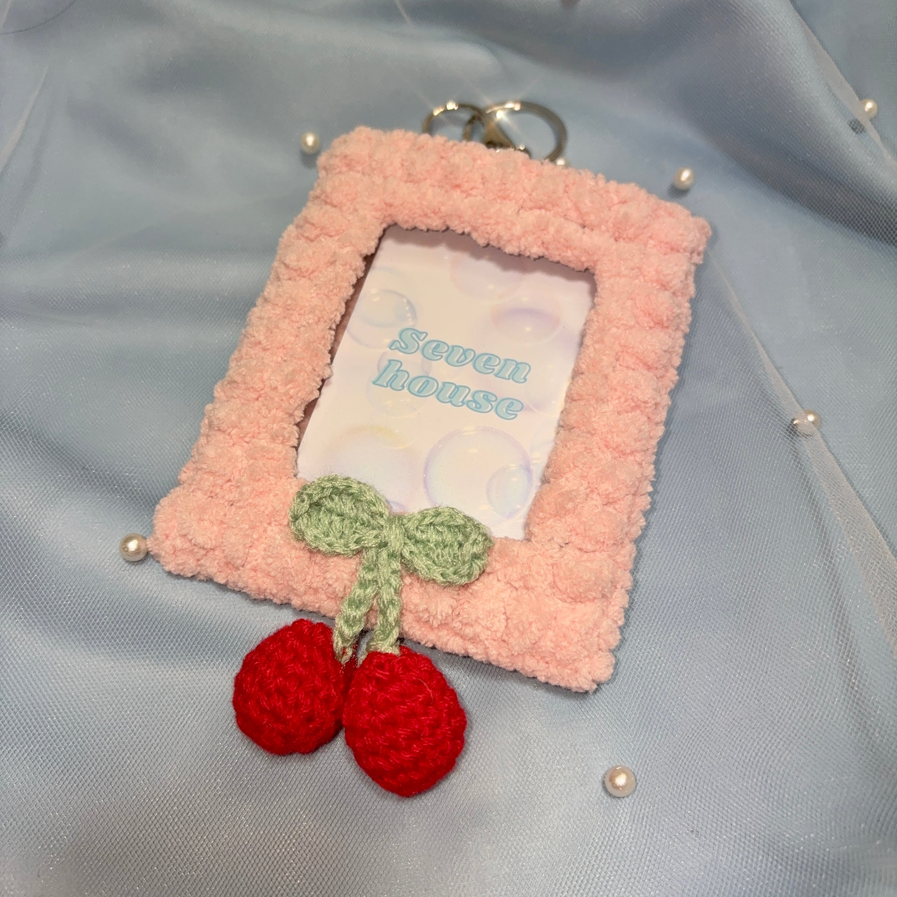 毛糸を使ったふわふわ甘めのトレカケースです♡